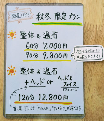 アロマトリートメント120分・かっさ120分にプラスの場合